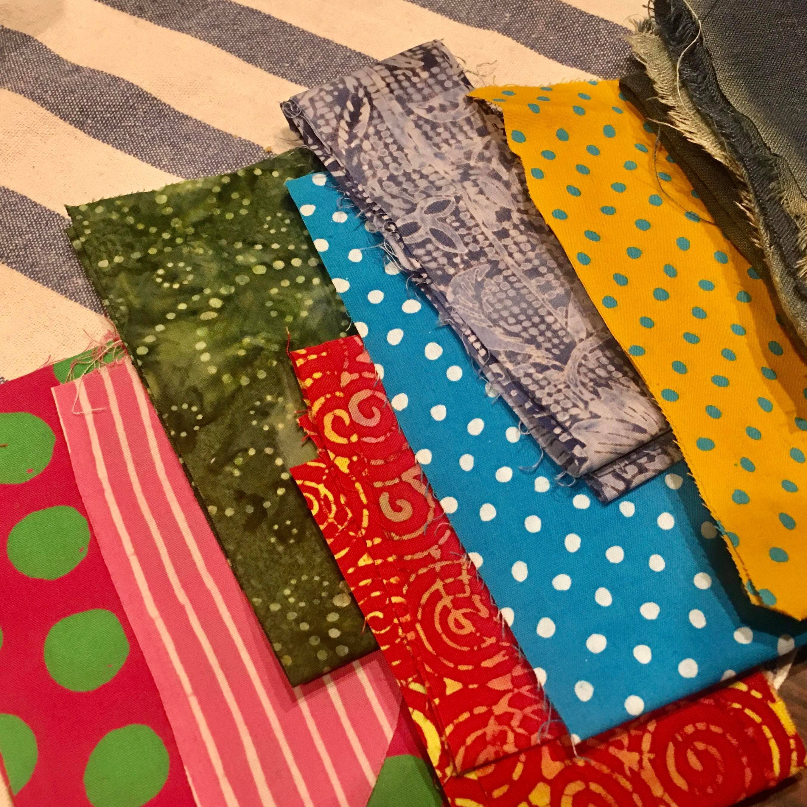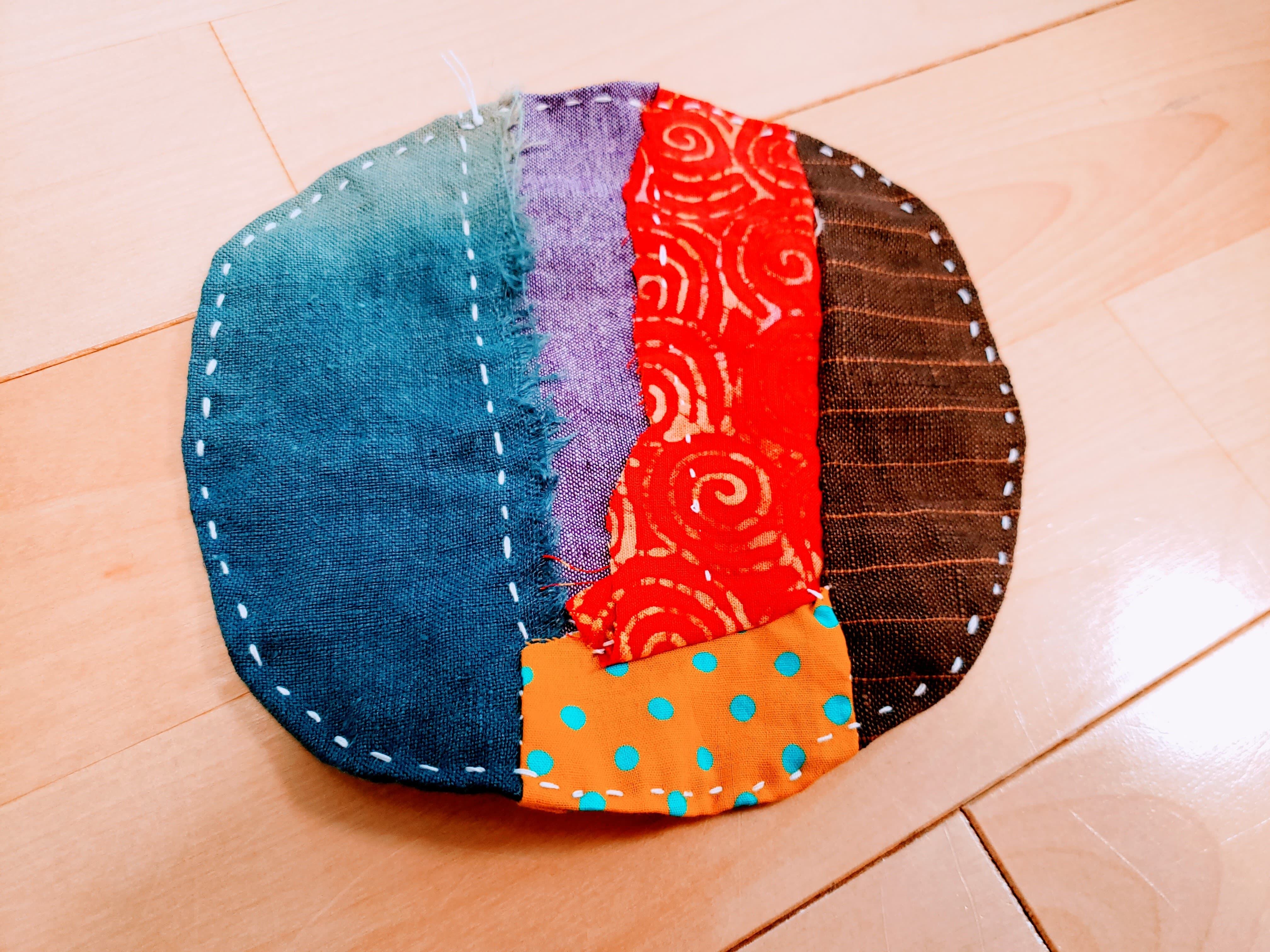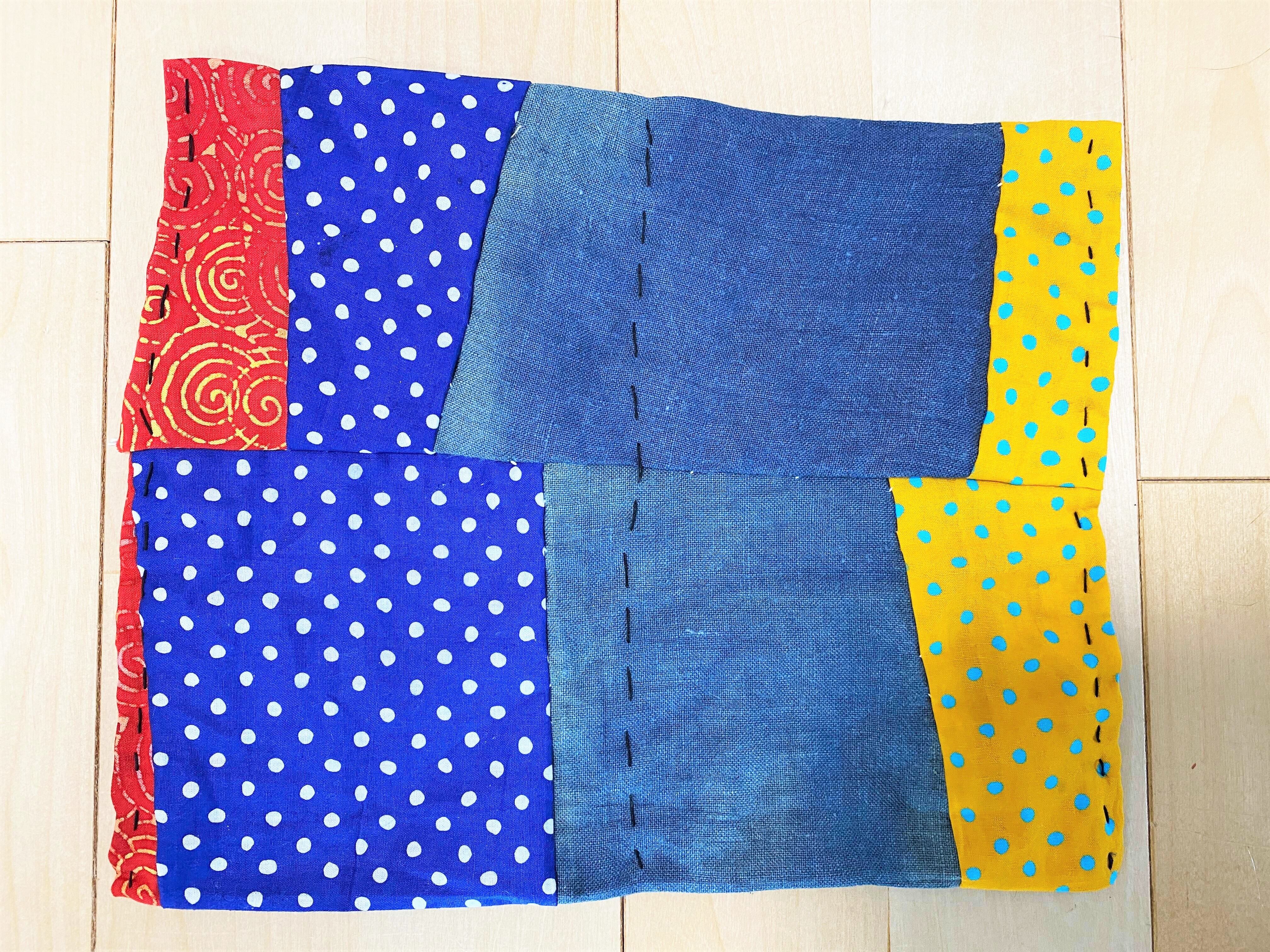 ②ご自宅にあるハギレ(良いものを探す必要はありません。お気に入りだけど着なくなった服やハンカチなど思い出のあるものを!複数種類あるとよいです)